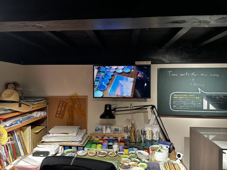 This is one of the rooms where you can take photos! Here it shows his workplace and a video on how he paints clouds.