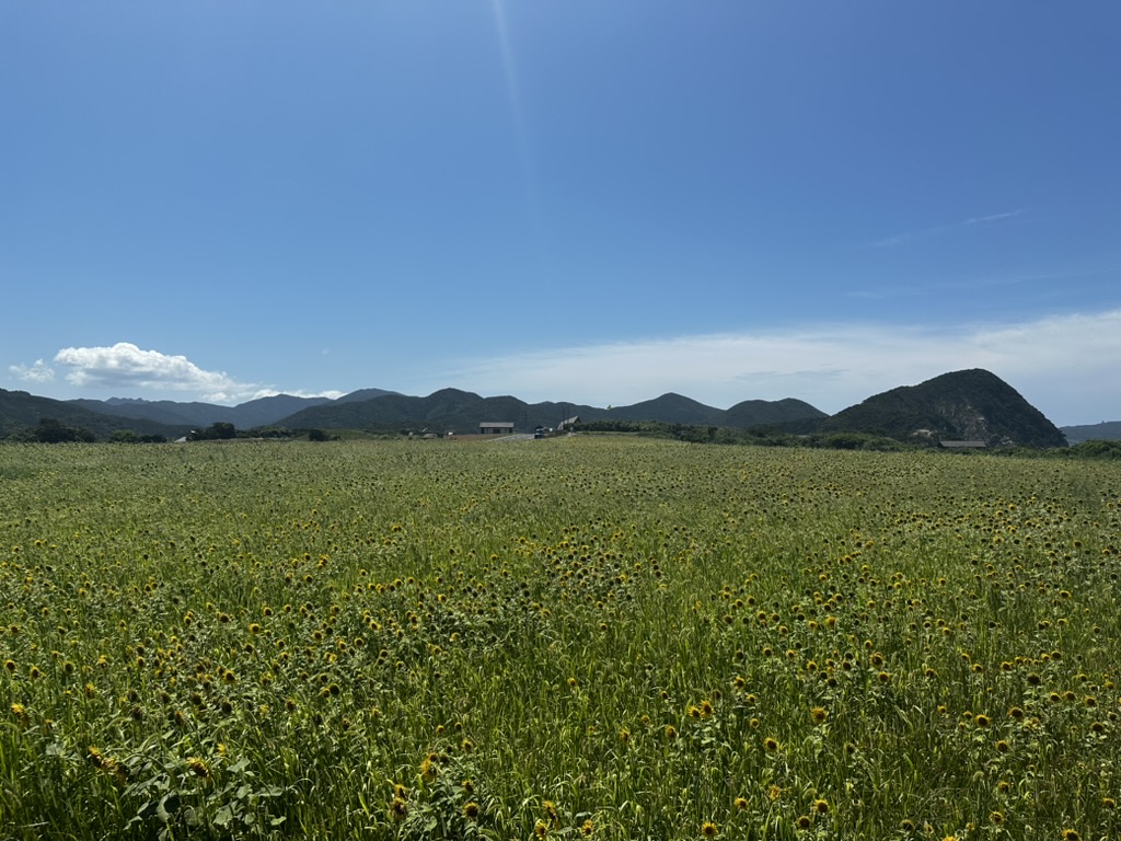 One of the first places I went to when I arrived in Fukue last year was Gyogasaki Park! This park’s sunflower field is so beautiful in the summer. There’s also a cafe that’s open on Fridays, Saturdays, and Sundays. The cafe has really delicious food and ice cream. I recommend getting the famous Goto udon and then finishing it off with some delicious vanilla ice cream.