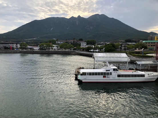 View of the Shimabara port area taken from the ferry bound for Kumamoto.