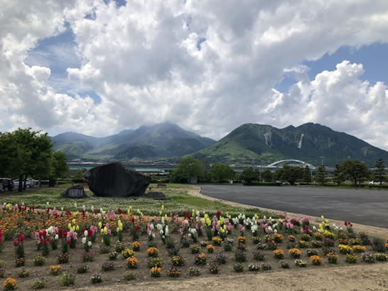 Views of Mt. Unzen National Park area taken from outside the Shimabara Disaster Memorial Museum.